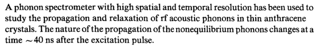 A phonon spectrometer with high spatial and temporal resolution has been used to study the propagation and relaxation of rf acoustic phonons in thin anthracene crystals. The nature of the propagation of the nonequilibrium phonons changes at a time ~ 40 ns after the excitation pulse.