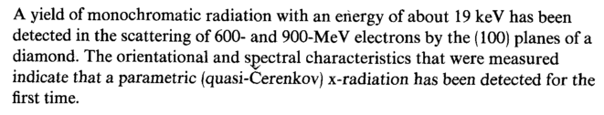 A yield of monochromatic radiation with an energy of about 19 keV has been detected in the scattering of 600and 900-MeV electrons by the (100) planes of a diamond. The orientational and spectral characteristics that were measured indicate that a parametric (quasi-Cerenkov) x-radiation has been detected for the first time.