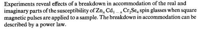 Experiments reveal effects of a breakdown in accommodation of the real and imaginary parts of the susceptibility of Znx С^_х Cr2Se4 spin glasses when square magnetic pulses are applied to a sample. The breakdown in accommodation can be described by a power law.