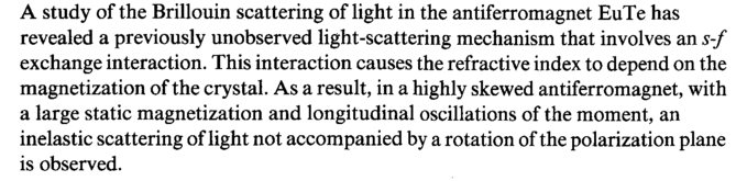 A study of the Brillouin scattering of light in the antiferromagnet EuTe has revealed a previously unobserved light-scattering mechanism that involves an s-f exchange interaction. This interaction causes the refractive index to depend on the magnetization of the crystal. As a result, in a highly skewed antiferromagnet, with a large static magnetization and longitudinal oscillations of the moment, an inelastic scattering of light not accompanied by a rotation of the polarization plane is observed.