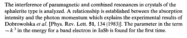 The interference of paramagnetic and combined resonances in crystals of the sphalerite type is analyzed. A relationship is established between the absorption intensity and the photon momentum which explains the experimental results of Dobrowolska et ah [Phys. Rev. Lett. 51, 134 (1983)]. The parameter in the term ~ к3 in the energy for a band electron in InSb is found for the first time.