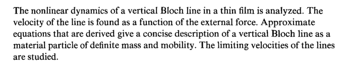 The nonlinear dynamics of a vertical Bloch line in a thin film is analyzed. The velocity of the line is found as a function of the external force. Approximate equations that are derived give a concise description of a vertical Bloch line as a material particle of definite mass and mobility. The limiting velocities of the lines are studied.