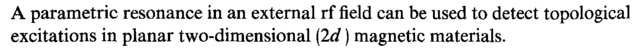 A parametric resonance in an external rf field can be used to detect topological excitations in planar two-dimensional