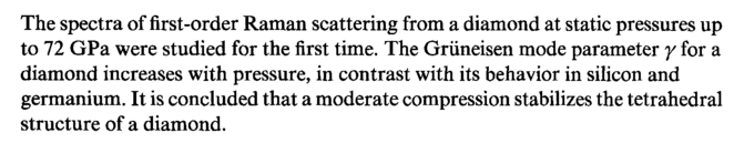 The spectra of first-order Raman scattering from a diamond at static pressures up to 72 GPa were studied for the first time. The Griineisen mode parameter γ for a diamond increases with pressure, in contrast with its behavior in silicon and germanium. It is concluded that a moderate compression stabilizes the tetrahedral structure of a diamond.