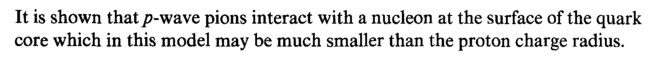 It is shown that /?-wave pions interact with a nucleon at the surface of the quark core which in this model may be much smaller than the proton charge radius.