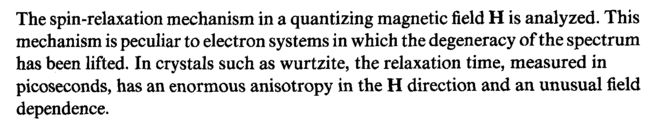 The spin-relaxation mechanism in a quantizing magnetic field Η is analyzed. This mechanism is peculiar to electron systems in which the degeneracy of the spectrum has been lifted. In crystals such as wurtzite, the relaxation time, measured in picoseconds, has an enormous anisotropy in the Η direction and an unusual field dependence.