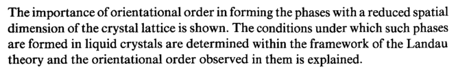 The importance of orientational order in forming the phases with a reduced spatial dimension of the crystal lattice is shown. The conditions under which such phases are formed in liquid crystals are determined within the framework of the Landau theory and the orientational order observed in them is explained.