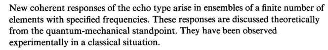 New coherent responses of the echo type arise in ensembles of a finite number of elements with specified frequencies. These responses are discussed theoretically from the quantum-mechanical standpoint. They have been observed experimentally in a classical situation.