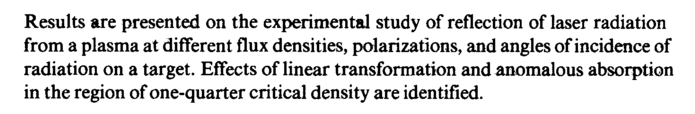 Results are presented on the experimental study of reflection of laser radiation from a plasma at different flux densities, polarizations, and angles of incidence of radiation on a target. Effects of linear transformation and anomalous absorption in the region of one-quarter critical density are identified.