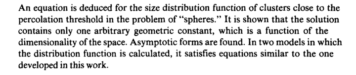 An equation is deduced for the size distribution function of clusters close to the percolation threshold in the problem of "spheres." It is shown that the solution contains only one arbitrary geometric constant, which is a function of the dimensionality of the space. Asymptotic forms are found. In two models in which the distribution function is calculated, it satisfies equations similar to the one developed in this work.