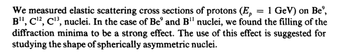 We measured elastic scattering cross sections of protons (Ep = 1 GeV) on Be9, В11, С12, C13, nuclei. In the case of Be9 and B11 nuclei, we found the filling of the diffraction minima to be a strong effect. The use of this effect is suggested for studying the shape of spherically asymmetric nuclei.