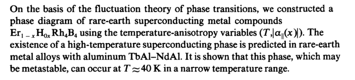 On the basis of the fluctuation theory of phase transitions, we constructed a phase diagram of rare-earth superconducting metal compounds Εη _χΗοχ^4Β4 using the temperature-anisotropy variables (Г,|ац(х)|). The existence of a high-temperature superconducting phase is predicted in rare-earth metal alloys with aluminum TbAl-NdAl. It is shown that this phase, which may be metastable, can occur at Τ ~ 40 К in a narrow temperature range.