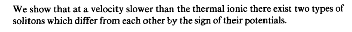 We show that at a velocity slower than the thermal ionic there exist two types of solitons which differ from each other by the sign of their potentials.