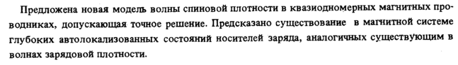 Предложена новая модель волны спиновой плотности в кв аз и одно мерных магнитных проводниках, допускающая точное решение. Предсказано существование в магнитной системе глубоких автолокализованных состояний носителей заряда, аналогичных существующим в волнах зарядовой плотности.