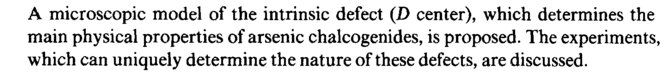 A microscopic model of the intrinsic defect (D center), which determines the main physical properties of arsenic chalcogenides, is proposed. The experiments, which can uniquely determine the nature of these defects, are discussed.