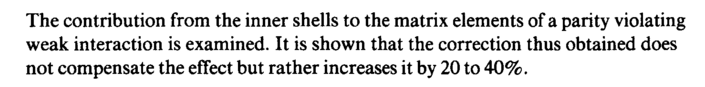 The contribution from the inner shells to the matrix elements of a parity violating weak interaction is examined. It is shown that the correction thus obtained does not compensate the effect but rather increases it by 20 to 40%.