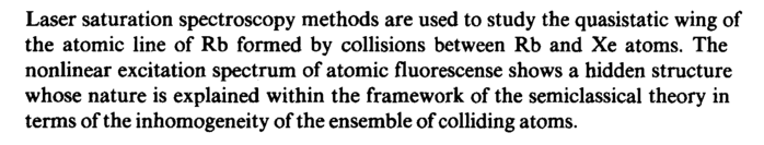 Laser saturation spectroscopy methods are used to study the quasistatic wing of the atomic line of Rb formed by collisions between Rb and Xe atoms. The nonlinear excitation spectrum of atomic fluorescense shows a hidden structure whose nature is explained within the framework of the semiclassical theory in terms of the inhomogeneity of the ensemble of colliding atoms.