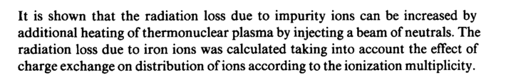 It is shown that the radiation loss due to impurity ions can be increased by additional heating of thermonuclear plasma by injecting a beam of neutrals. The radiation loss due to iron ions was calculated taking into account the effect of charge exchange on distribution of ions according to the ionization multiplicity.