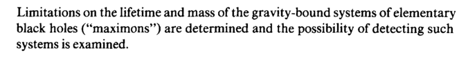 Limitations on the lifetime and mass of the gravity-bound systems of elementary black holes ("maximons") are determined and the possibility of detecting such systems is examined.