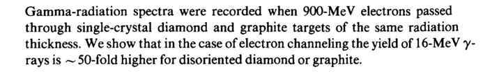 Gamma-radiation spectra were recorded when 900-MeV electrons passed through single-crystal diamond and graphite targets of the same radiation thickness. We show that in the case of electron channeling the yield of 16-MeV y-rays is ~ 50-fold higher for disoriented diamond or graphite.