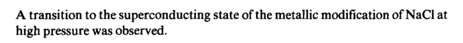 A transition to the superconducting state of the metallic modification of NaCl at high pressure was observed.