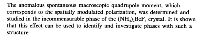 The anomalous spontaneous macroscopic quadrupole moment, which corresponds to the spatially modulated polarization, was determined and studied in the incommensurable phase of the (NH4)2BeF4 crystal. It is shown that this effect can be used to identify and investigate phases with such a structure.