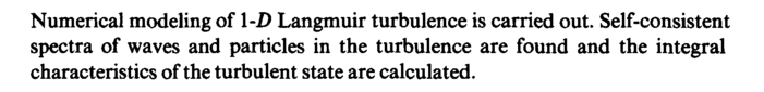 Numerical modeling of 1-D Langmuir turbulence is carried out. Self-consistent spectra of waves and particles in the turbulence are found and the integral characteristics of the turbulent state are calculated.