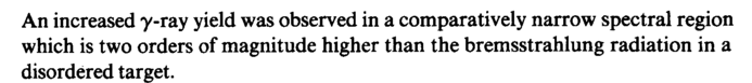 An increased γ-гау yield was observed in a comparatively narrow spectral region which is two orders of magnitude higher than the bremsstrahlung radiation in a disordered target.