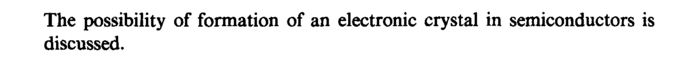 The possibility of formation of an electronic crystal in semiconductors is discussed.