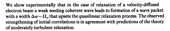We show experimentally that in the case of relaxation of a velocity-diffused electron beam a weak seeding coherent wave leads to formation of a wave packet with a width Δω ~ ΩίΓ that upsets the quasilinear relaxation process. The observed strengthening of initial correlations is in agreement with predictions of the theory of moderately turbulent relaxation.