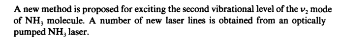 A new method is proposed for exciting the second vibrational level of the v2 mode of NH3 molecule. A number of new laser lines is obtained from an optically pumped NH3 laser.