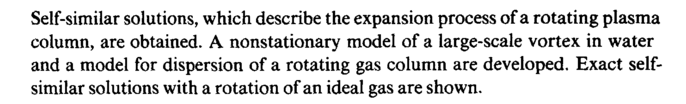 Self-similar solutions, which describe the expansion process of a rotating plasma column, are obtained. A nonstationary model of a large-scale vortex in water and a model for dispersion of a rotating gas column are developed. Exact self-similar solutions with a rotation of an ideal gas are shown.