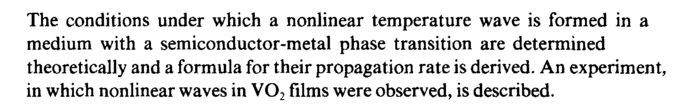 The conditions under which a nonlinear temperature wave is formed in a medium with a semiconductor-metal phase transition are determined theoretically and a formula for their propagation rate is derived. An experiment, in which nonlinear waves in V02 films were observed, is described.