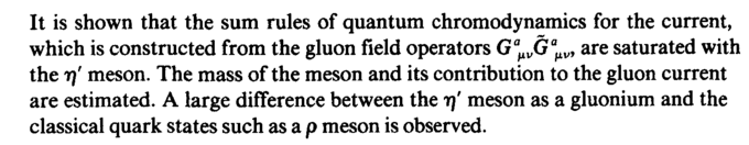 It is shown that the sum rules of quantum chromodynamics for the current, which is constructed from the gluon field operators βαμνόαμν, are saturated with the η' meson. The mass of the meson and its contribution to the gluon current are estimated. A large difference between the η' meson as a gluonium and the classical quark states such as a ρ meson is observed.