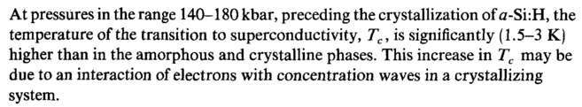 At pressures in the range 14(M 80 kbar, preceding the crystallization of a-Si:H, the temperature of the transition to superconductivity, Tc, is significantly (1.5-3 K) higher than in the amorphous and crystalline phases. This increase in Tc may be due to an interaction of electrons with concentration waves in a crystallizing system.