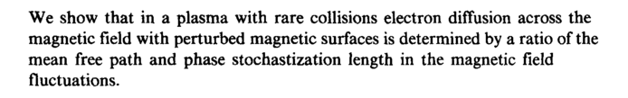 We show that in a plasma with rare collisions electron diffusion across the magnetic field with perturbed magnetic surfaces is determined by a ratio of the mean free path and phase stochastization length in the magnetic field fluctuations.