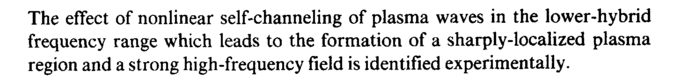 The effect of nonlinear self-channeling of plasma waves in the lower-hybrid frequency range which leads to the formation of a sharply-localized plasma region and a strong high-frequency field is identified experimentally.