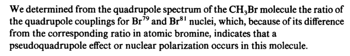 We determined from the quadrupole spectrum of the CH3Br molecule the ratio of the quadrupole couplings for Br79 and Br81 nuclei, which, because of its difference from the corresponding ratio in atomic bromine, indicates that a pseudoquadrupole effect or nuclear polarization occurs in this molecule.