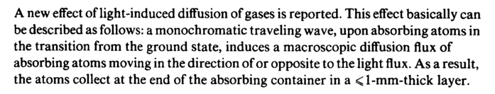 A new effect of light-induced diffusion of gases is reported. This effect basically can be described as follows: a monochromatic traveling wave, upon absorbing atoms in the transition from the ground state, induces a macroscopic diffusion flux of absorbing atoms moving in the direction of or opposite to the light flux. As a result, the atoms collect at the end of the absorbing container in a <l-mm-thick layer.