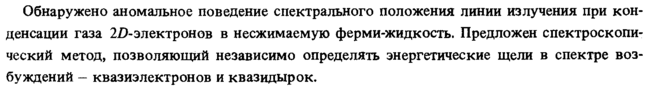 Обнаружено аномальное поведение спектрального положения линии излучения при конденсации газа 2D-электронов в несжимаемую ферми-жидкость. Предложен спектроскопический метод, позволяющий независимо определять энергетические щели в спектре возбуждений квазиэлектронов и квазидырок.