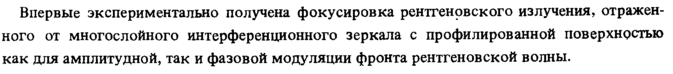 Впервые экспериментально получена фокусировка рентгеновского излучения, отраженного от многослойного интерференционного зеркала с профилированной поверхностью как для амплитудной, так и фазовой модуляции фронта рентгеновской волны.