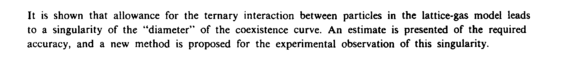 It is shown that allowance for the ternary interaction between particles in the lattice-gas model leads to a singularity of the "diameter" of the coexistence curve. An estimate is presented of the required accuracy, and a new method is proposed for the experimental observation of this singularity.