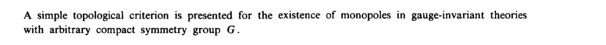 A simple topological criterion is presented for the existence of monopoles in gauge-invariant theories with arbitrary compact symmetry group G.