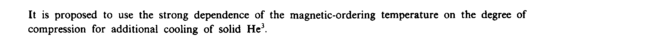 It is proposed to use the strong dependence of the magnetic-ordering temperature on the degree of compression for additional cooling of solid He