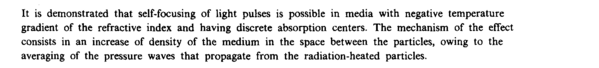 It is demonstrated that self-focusing of light pulses is possible in media with negative temperature gradient of the refractive index and having discrete absorption centers. The mechanism of the effect consists in an increase of density of the medium in the space between the particles, owing to the averaging of the pressure waves that propagate from the radiation-heated particles.