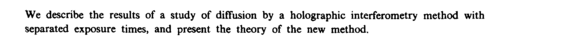 We describe the results of a study of diffusion by a holographic interferometry method with separated exposure times, and present the theory of the new method.