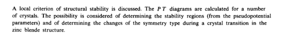 A local criterion of structural stability is discussed. The Ρ Τ diagrams are calculated for a number of crystals. The possibility is considered of determining the stability regions (from the pseudopotential parameters) and of determining the changes of the symmetry type during a crystal transition in the zinc blende structure.