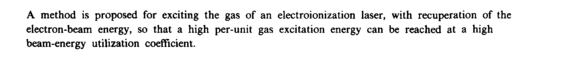 A method is proposed for exciting the gas of an electroionization laser, with recuperation of the electron-beam energy, so that a high per-unit gas excitation energy can be reached at a high beam-energy utilization coefficient.