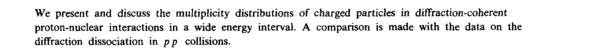 We present and discuss the multiplicity distributions of charged particles in diffraction-coherent proton-nuclear interactions in a wide energy interval. A comparison is made with the data on the diffraction dissociation in ρ ρ collisions.