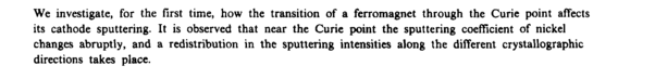 We investigate, for the first time, how the transition of a ferromagnet through the Curie point affects its cathode sputtering. It is observed that near the Curie point the sputtering coefficient of nickel changes abruptly, and a redistribution in the sputtering intensities along the different crystallographic directions takes place.